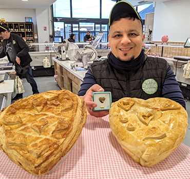 Pour la Saint-Valentin, Bruno Jaegli de Sélestat et Volailles Stirmel de Goxwiller ont créé des tourtes 🥧 en forme de cœur.