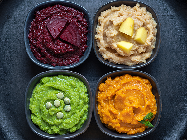 Vous cherchez un accompagnement original pour vos viandes festives? Testez ce quatuor de purées colorées et savoureuses. Ou servez-les individuellement avec vos repas de tous les jours…😋